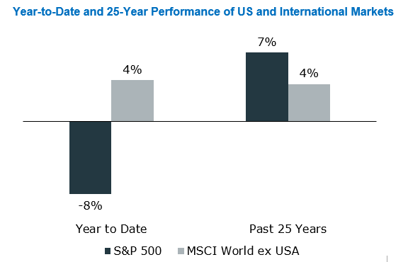 Year-to-Date and 25-Year Performance of US and International Markets