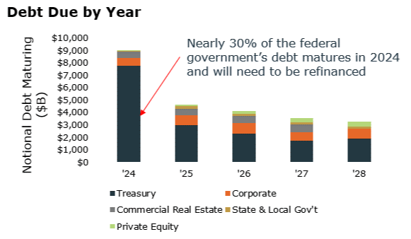 Taxes — in particular the Trump-era tax cuts that are set to expire next year – are likely to be a focal point too. And given the large amount of U.S. debt coming due in today’s higher-rate environment, government debt and spending are likely to be talking points as well.