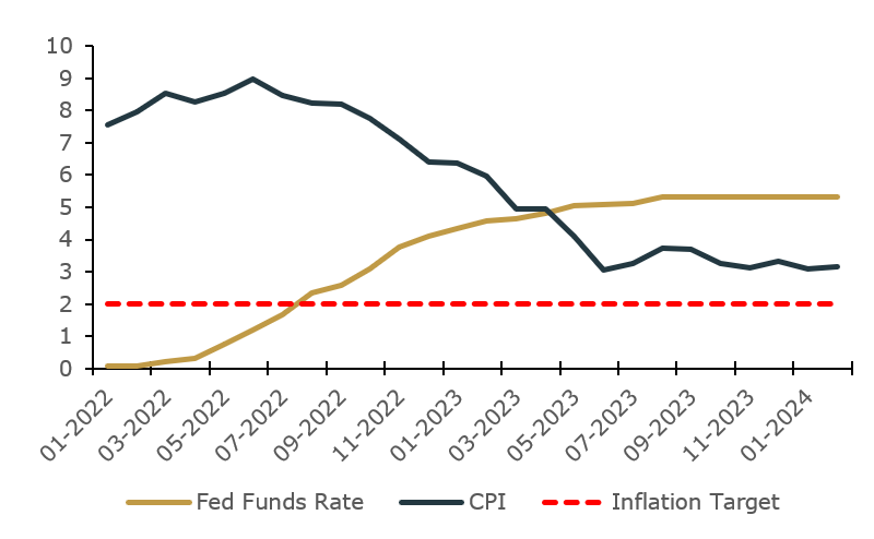 CPI vs Federal Funds Rate (%)