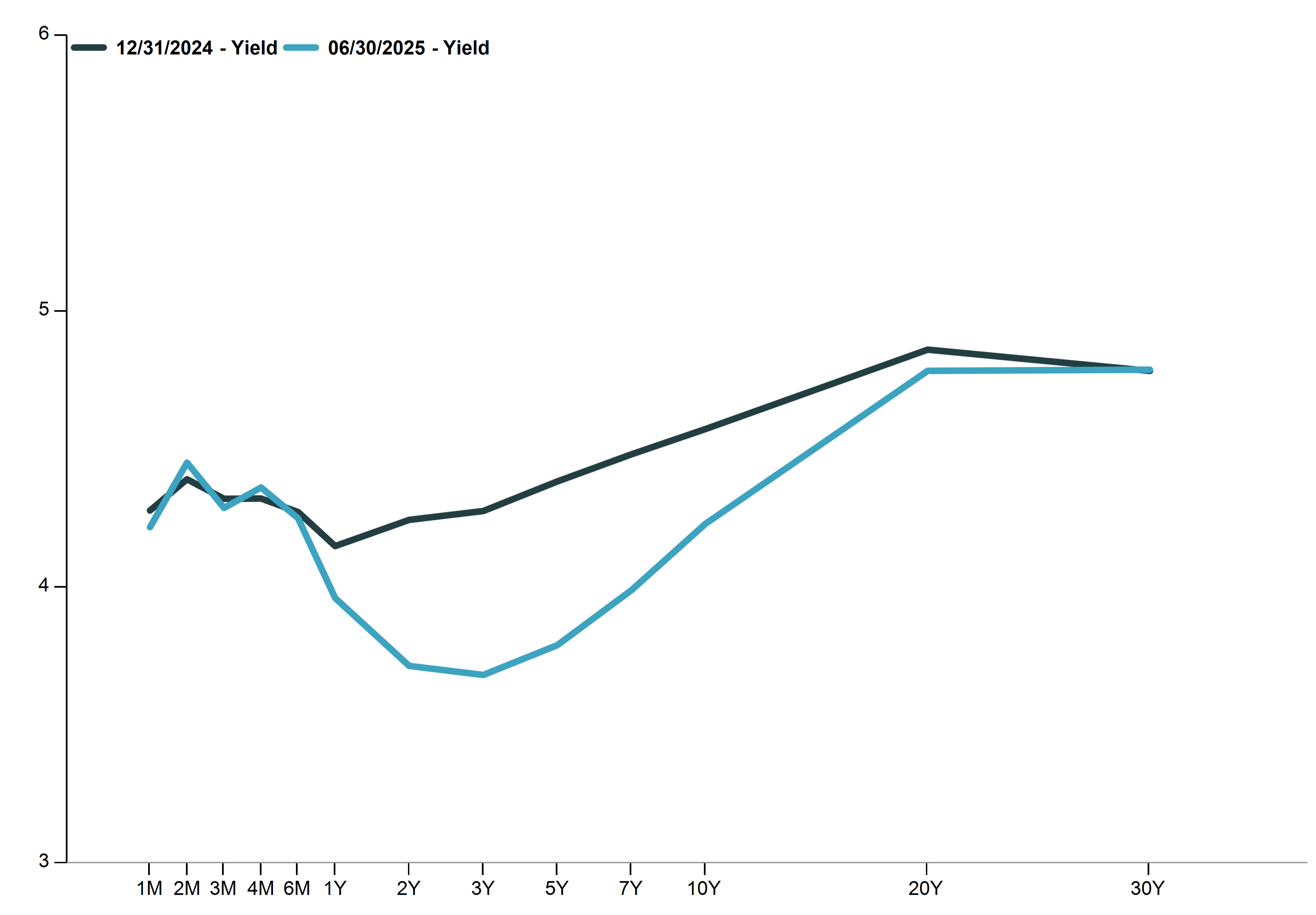 Treasury Yield Curve – December 31, 2024 vs June 30, 2025
