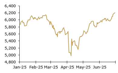 - The broad U.S. stock market saw another volatile quarter, starting with a sharp tariff-induced sell-off and ending at record highs. The S&P 500 index gained 6% year-to-date through the second quarter.